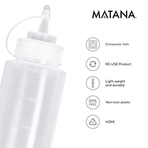 MATANA – 4 Stück Großer Squeeze Flasche, Saucenflasche, Quetschflasche mit Kappen, 500ml – Stabil & BPA Frei