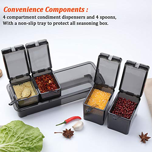 2. [Convenience Components]: 4 Gewürzspender und 4 Servierlöffel im Lieferumfang enthalten, mit einer rutschfesten Schale zum Schutz aller Gewürzboxen.