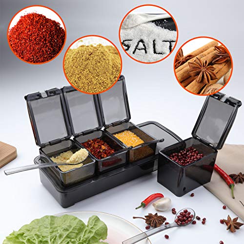 Specification: V·RESOURCING 4 Stück Würze Box,Schwarz Salz Gewürz Jar Flaschen Set,Aufbewahrungsbehälter für Salz Pfeffer Paprika Curry…