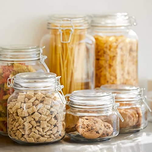 Ausgestattet mit einem luftdichten Verschlussdeckel mit Drahtscharnier, wodurch es die perfekte Option für die Aufbewahrung von großen oder trockenen Lebensmitteln wie Reis, Bohnen, Keksen, Süßigkeiten und Getränken ist.