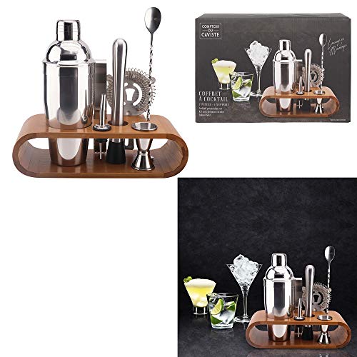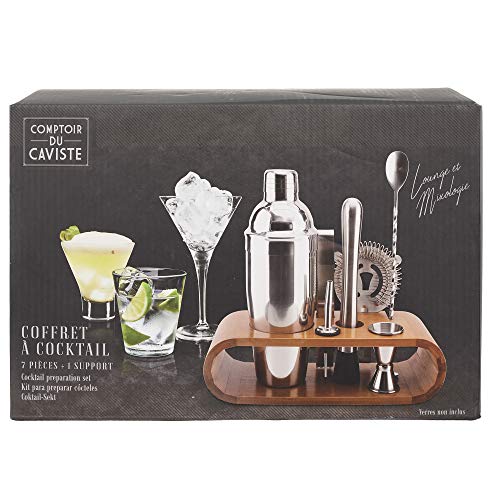 Diese Cocktailbox wird Liebhaber hausgemachter Cocktails begeistern. Inhalt: 1 Bambusstütze, 1 Edelstahlschüttler 650 ml, 1 Edelstahlstößel, 1 Edelstahlcocktailsieb, 1 Edelstahlcocktaillöffel, 1 Edelstahlmessglas 1 cl 2cl, 1 Edelstahlgießkappe, 1 Edelstahlzange.