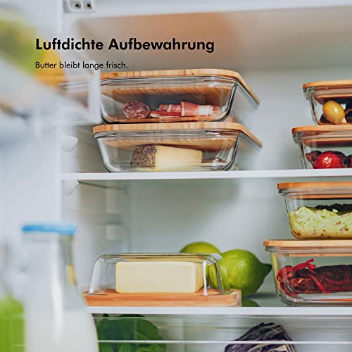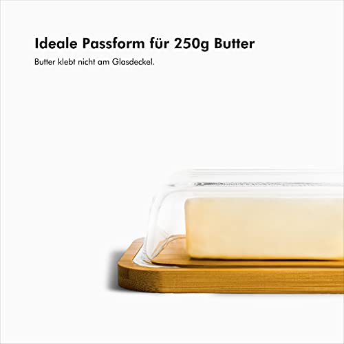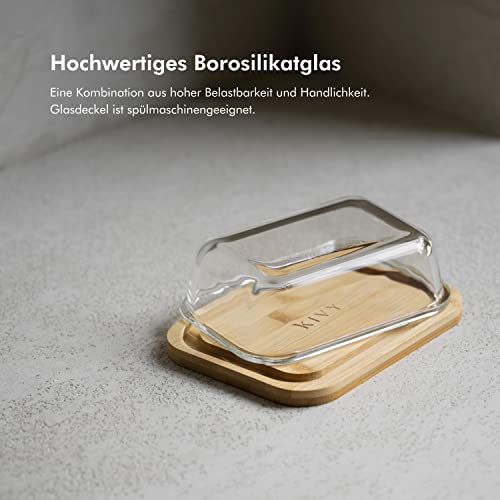 KIVY Butterdose Glas mit Deckel aus Bambus – Butterglocke – Butterdosen – Butter Dish – Butterschale mit Deckel…