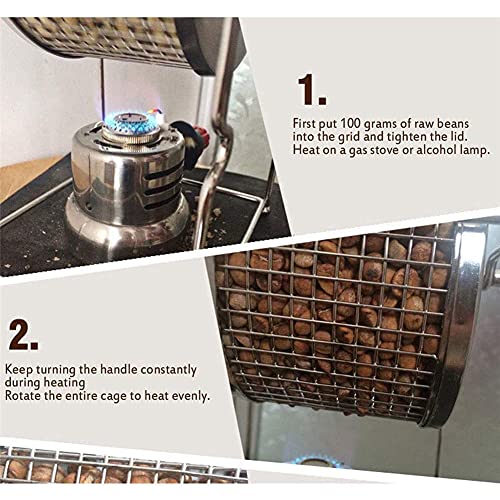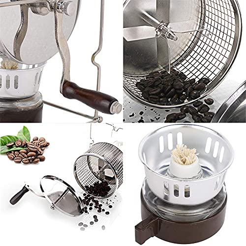 ZJWD Manueller Kaffeebohnenröster, DIY Kaffeeröster mit Griff, handbetätigtes Drehraddesign mit Alkoholherd für Zuhause…