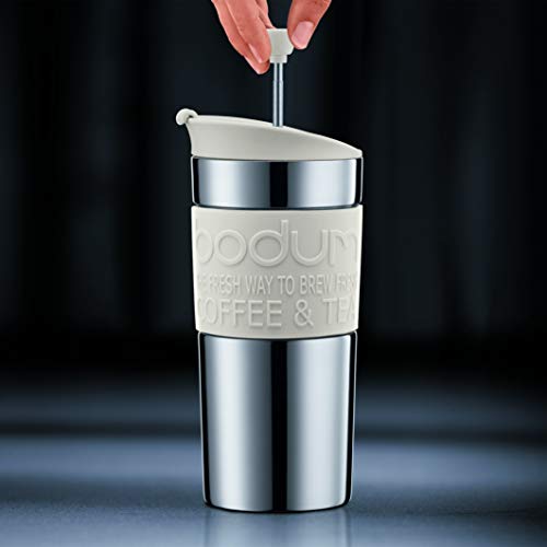 Bodums typisches French Press System ist mit der Bodum Travel Mug kombiniert, damit Sie auch unterwegs einen genussvollen Kaffee zubereiten und genießen können