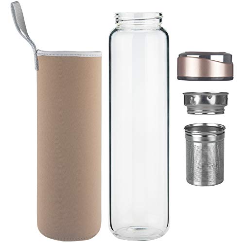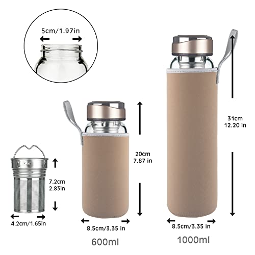 Specification: DEARRAY Glas Teeflasche für unterwegs mit Edelstahl Sieb 600ml / 1000ml / 1 Liter, Teekanne mit Filter to go…