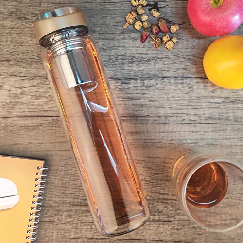 BRAUEN SIE UNTERWEGS GETRÄNKE: Mit einem zweiteiligen abnehmbaren Teefilter und einem Sieb eignet sich unsere Glas-Teeflasche perfekt zum Brauen von heißem und gefrorenem Loseblatt-Tee, Kräutergetränken und Obst infundierten Wasser.