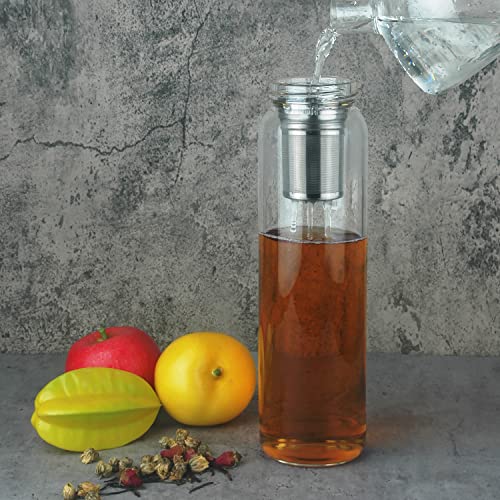 DEARRAY Glas Teeflasche für unterwegs mit Edelstahl Sieb 600ml / 1000ml / 1 Liter, Teekanne mit Filter to go…