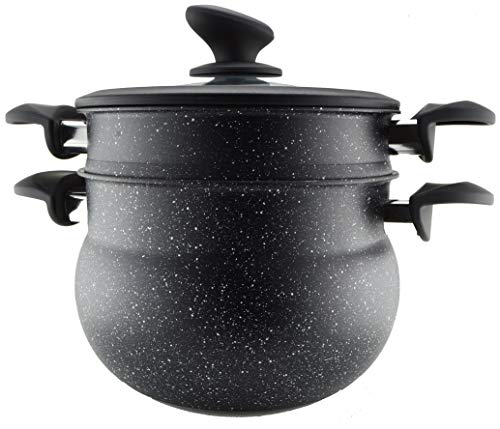 Couscoussiere Kuskus Topf 10 Liter Damfgarer COUSCOUS Glasdeckel Schwarz