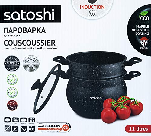 Couscous-Topf aus Stein, 26 cm, mit Glasdeckel, 11 l, für alle Herdarten geeignet, auch Induktion