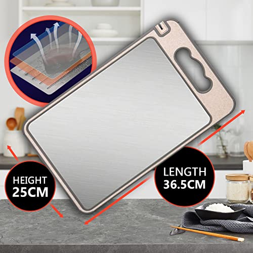❤PREMIUM UND EINFACH ZU SÄUBERN: Schneidebrett Schnittfläche aus lebensmittelechtem Material PP für einen sicheren Lebensmittelkontakt. Die Schwarz Rot Auftauplatte aus ist Aluminium,Beige Auftauen aus ist Edelstahl. das Schneidebrett nach Gebrauch einfach in der Spülmaschine gereinigt werden.