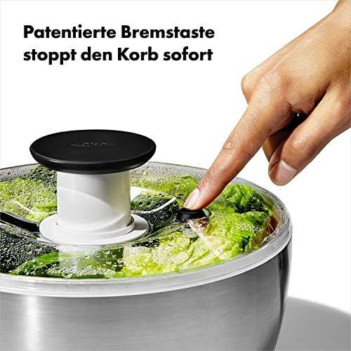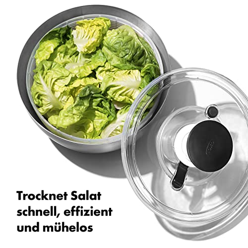 OXO SteeL Salatschleuder aus Edelstahl mit Deckel – zum Waschen und Trocknen von Salat