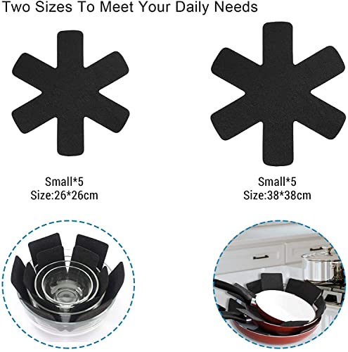 MEHRERE GRÖSSEN: Das topfschutz stapelschutz set enthält 10 Pads in 2 verschiedenen Größen (26 und 28 cm) zu je 5 stück pfannentrenner .Topftrenner lassen sich einfach mit einer handelsüblichen Schere zuschneiden.