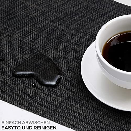 ·1- ✅ [Hochwertiges Material und Größe]: Hergestellt aus hochwertigem Material, 70 % PVC und 30 % Polyester. Farbe Schwarz, Größe 45×30 cm. Wird als 6er-Set als Tischset geliefert, die Ihren Esstisch eleganter aussehen lassen.
